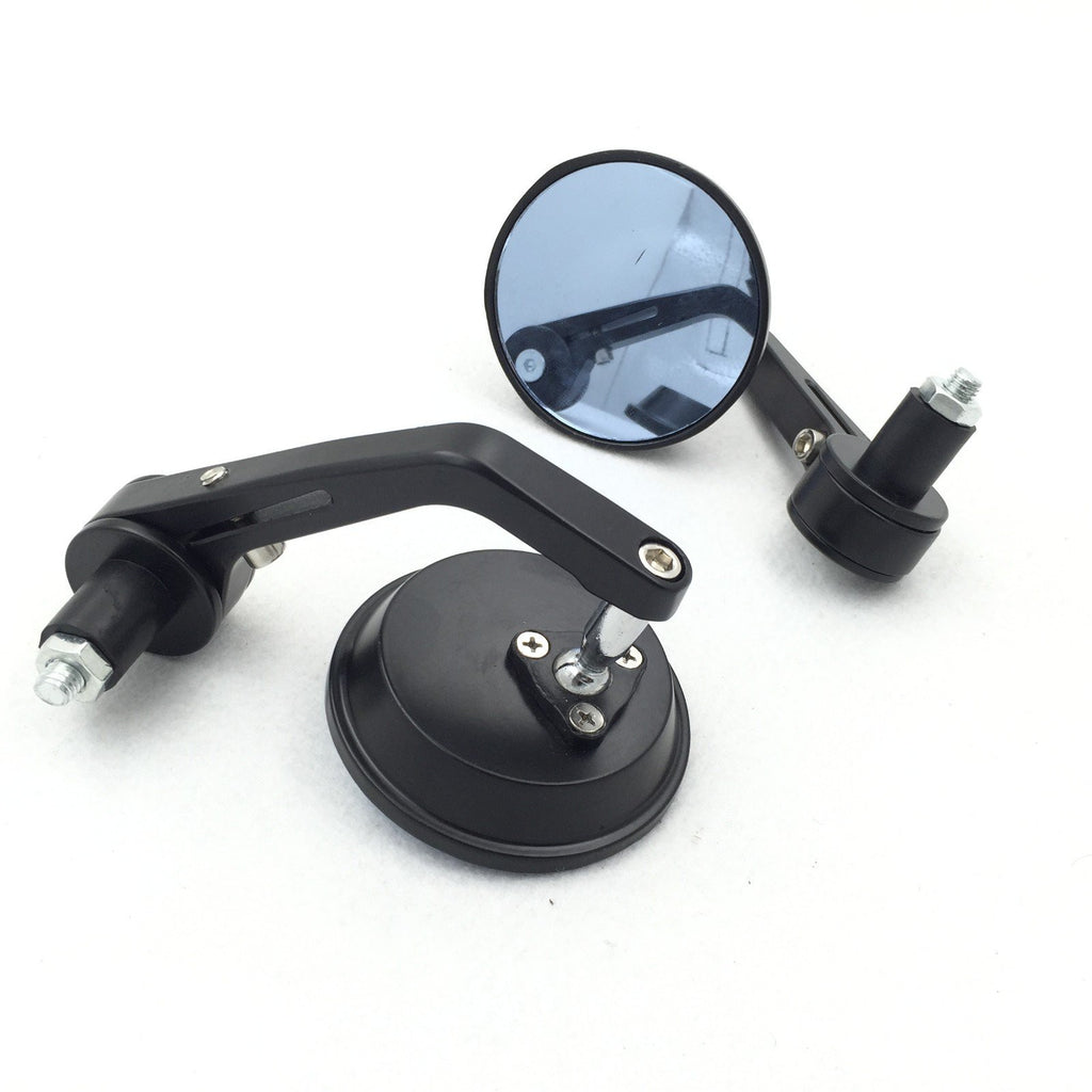HTT Motorcycle Black 2PCs Adjustable Heavy Duty Round Street Bike Bar End Mirrors 7/8