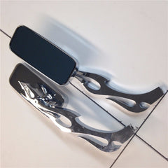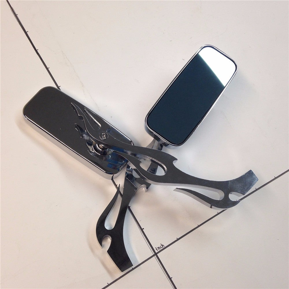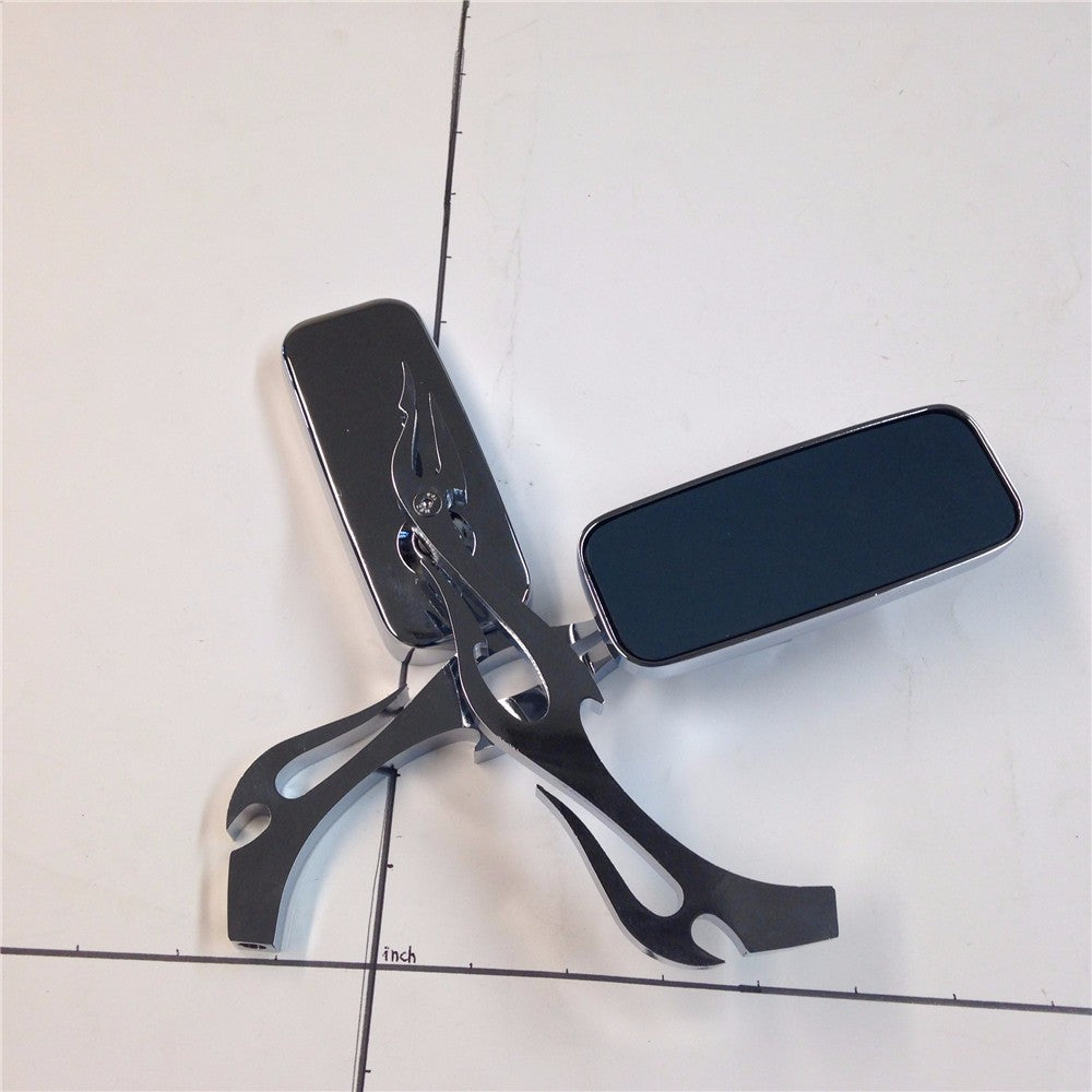 HTT Rectangle Shape Flame/Fire Stem Aluminum Custom Chrome Mirrors For All Honda/Kawasaki/Suzuki/Cruiser Bikes models