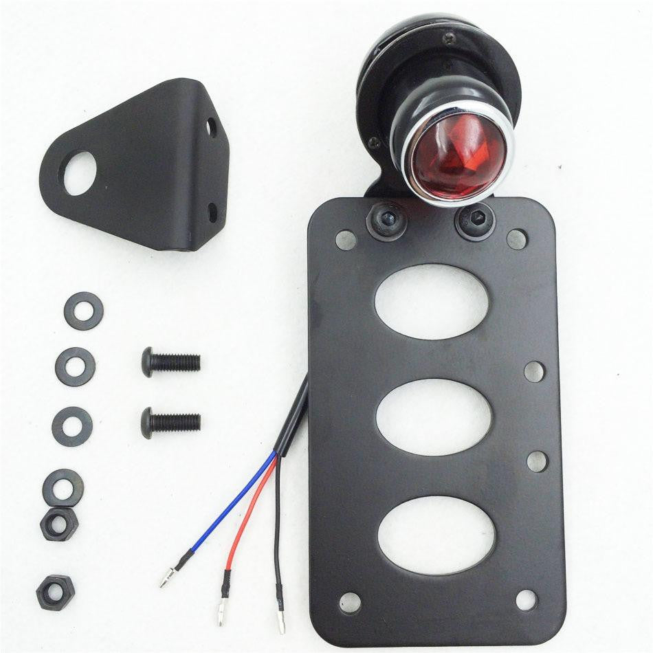 Black Round Side Mount Tail Light License Plate Bracket Chopper Bobber Harley