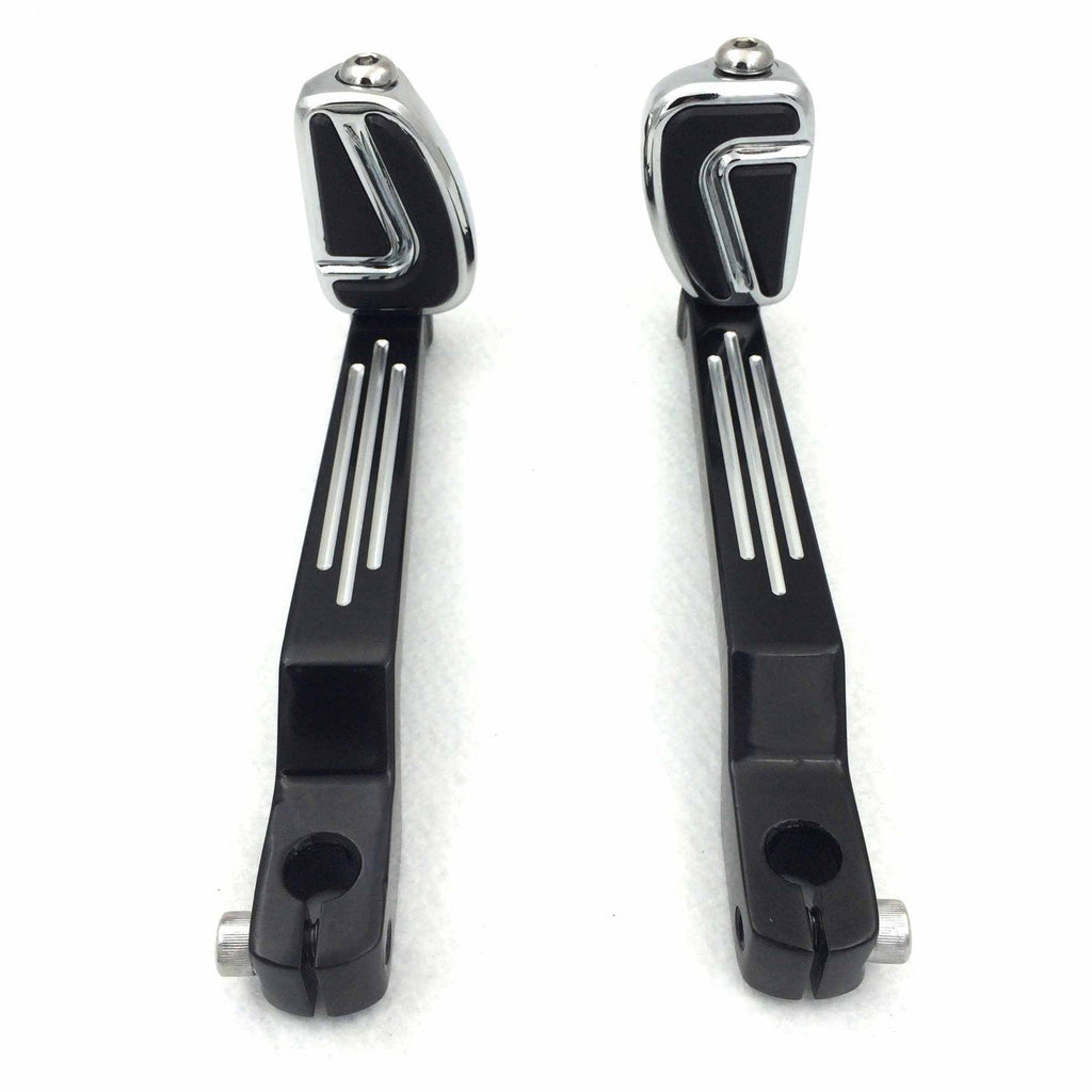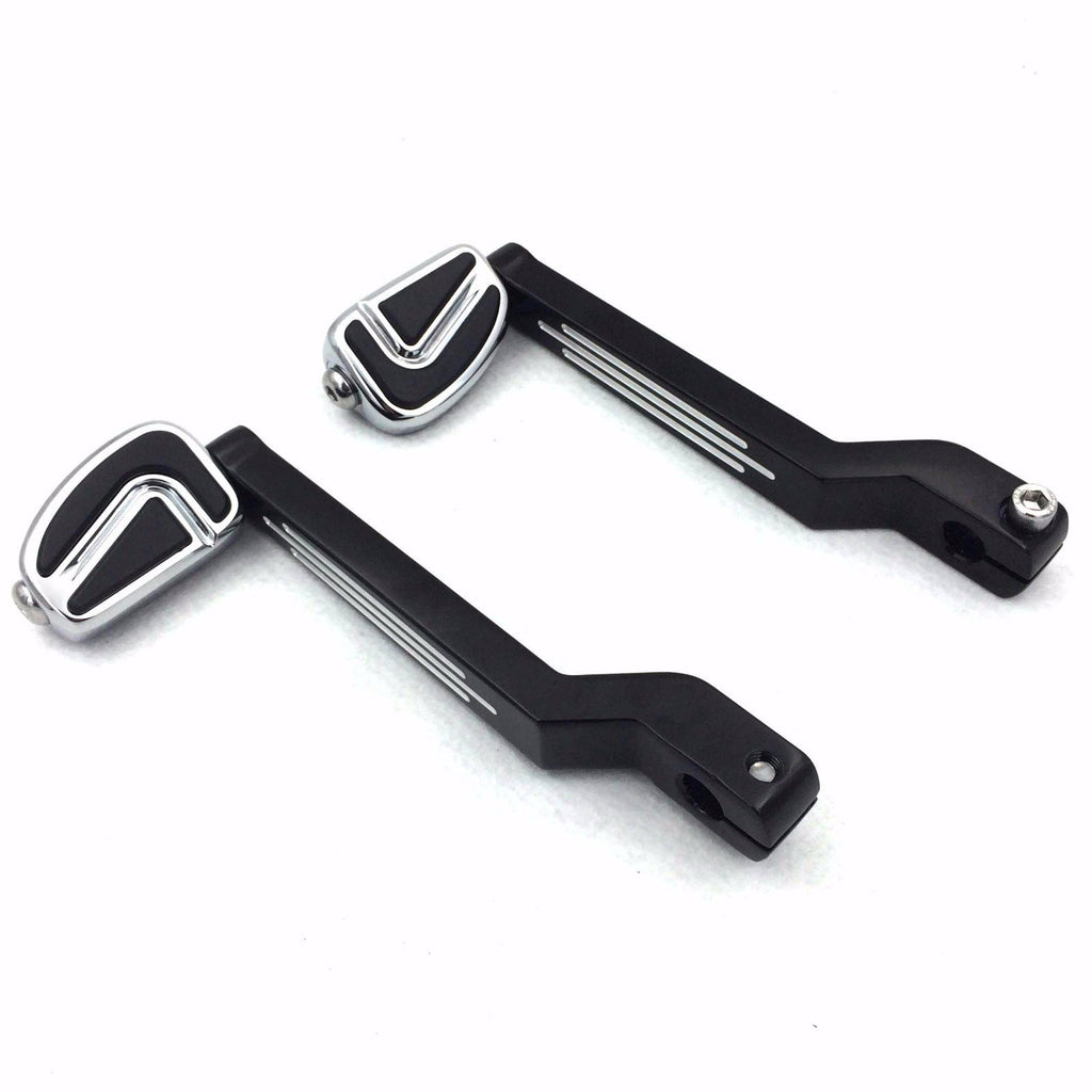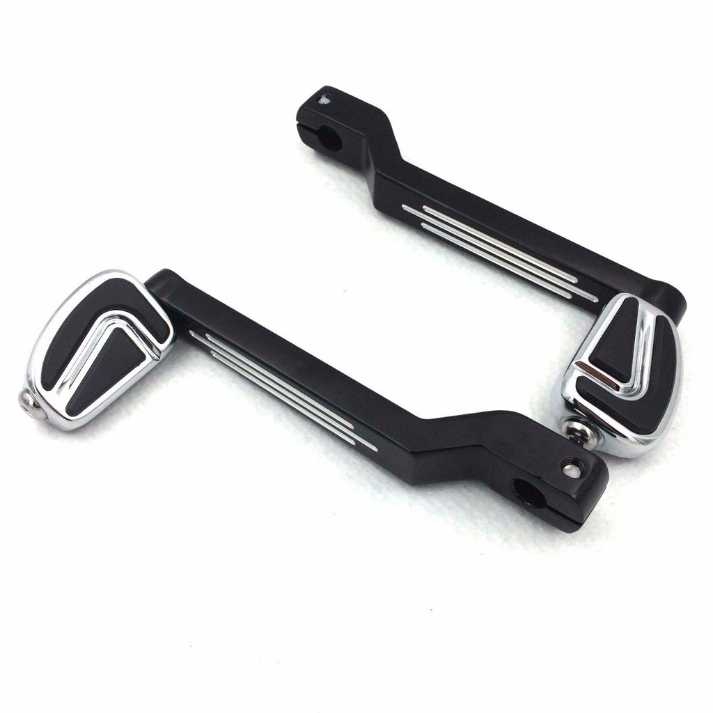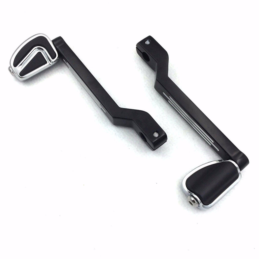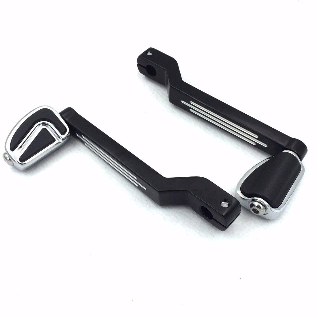 HTT Motorcycle Aluminum Chrome Airflow Shifter Pegs with Black Grooved Heel/Toe Shift Levers For 1986-later FL Softail/1988-later Touring and 2008-later Trike models
