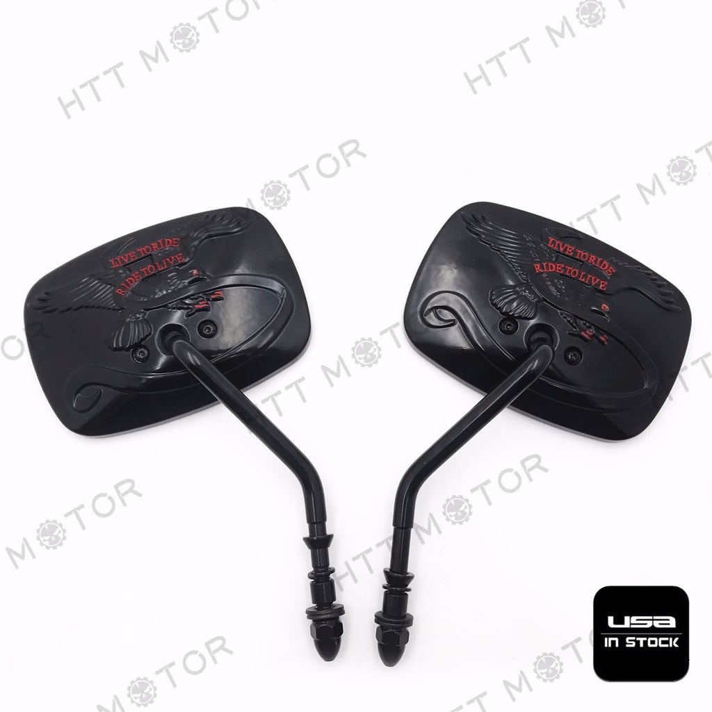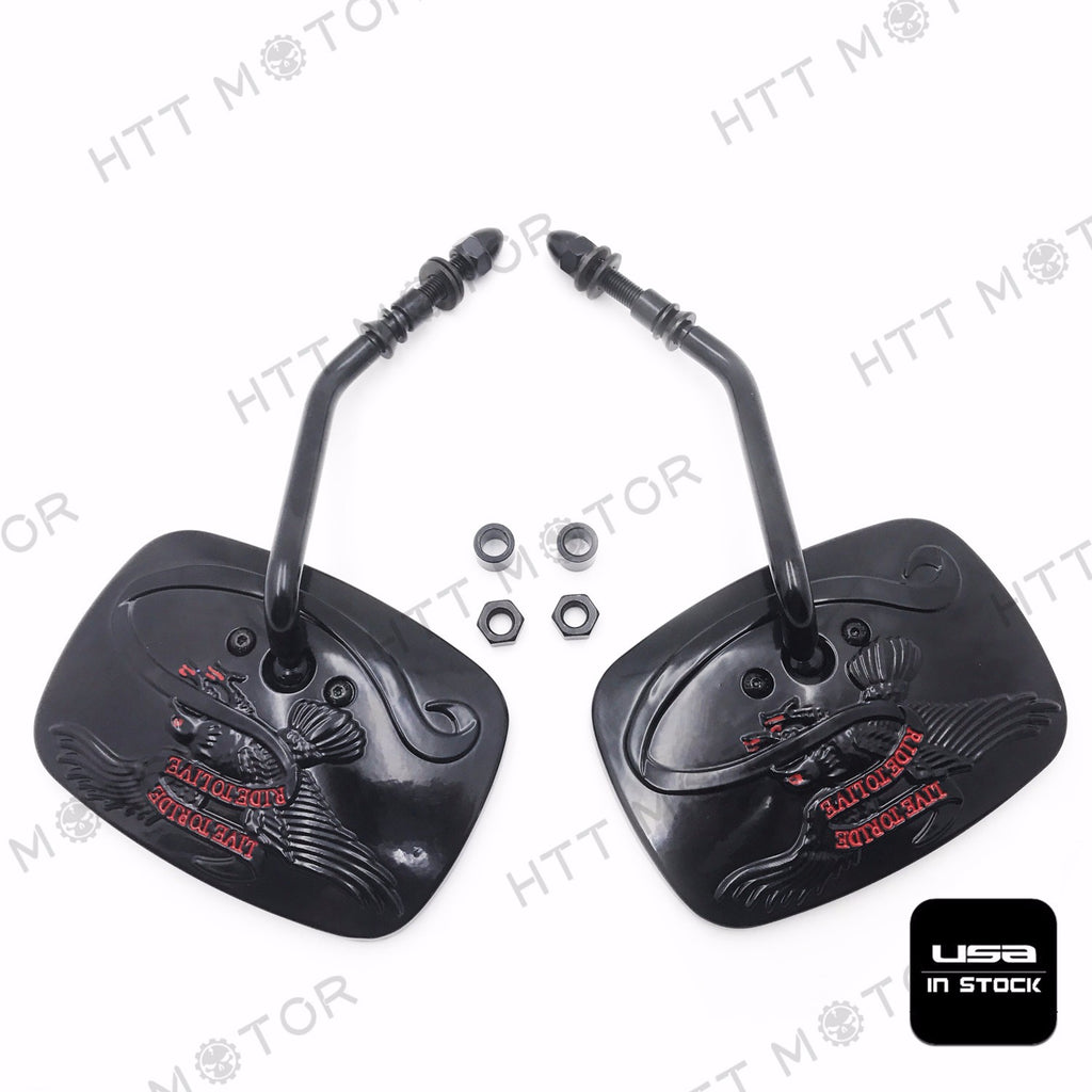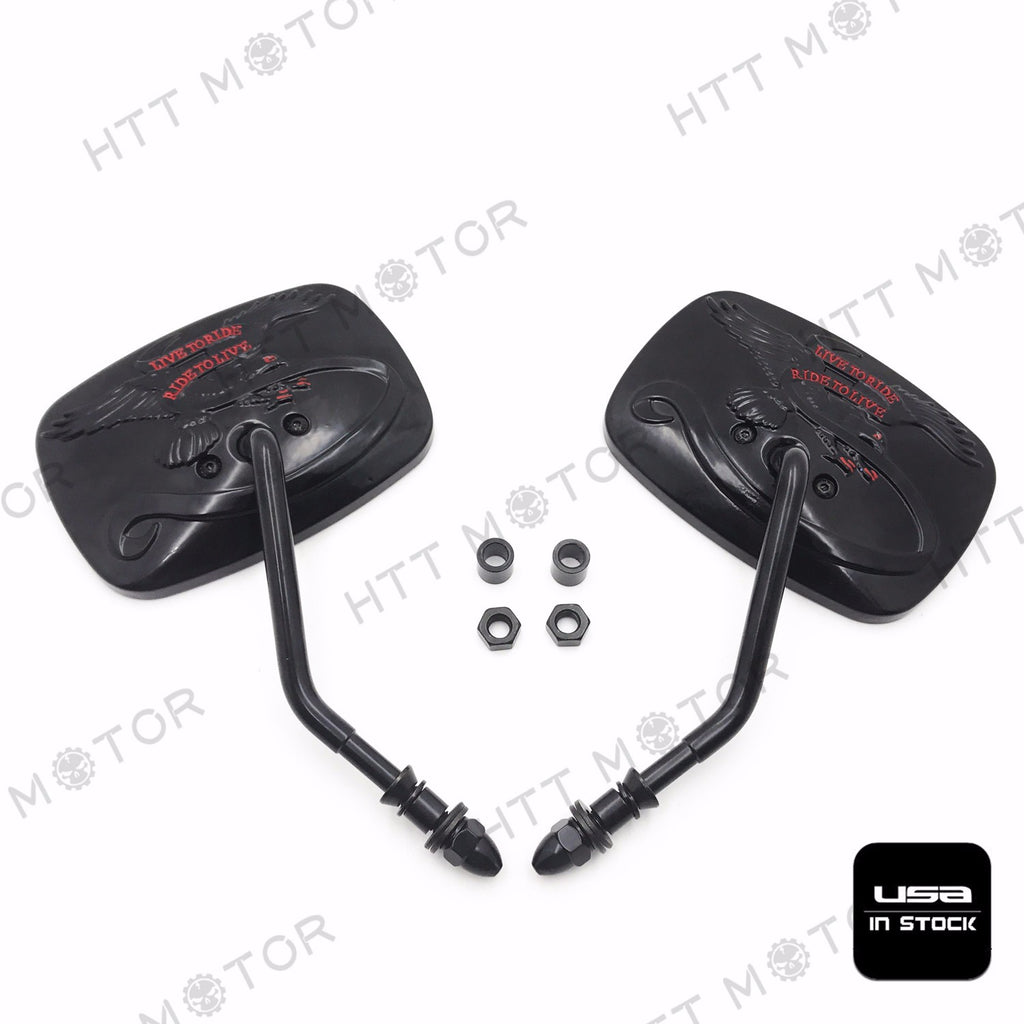 HTTMT- Rear View Side Mirrors For Harley Davidson Eagle Spirit Live to Ride 3D Black