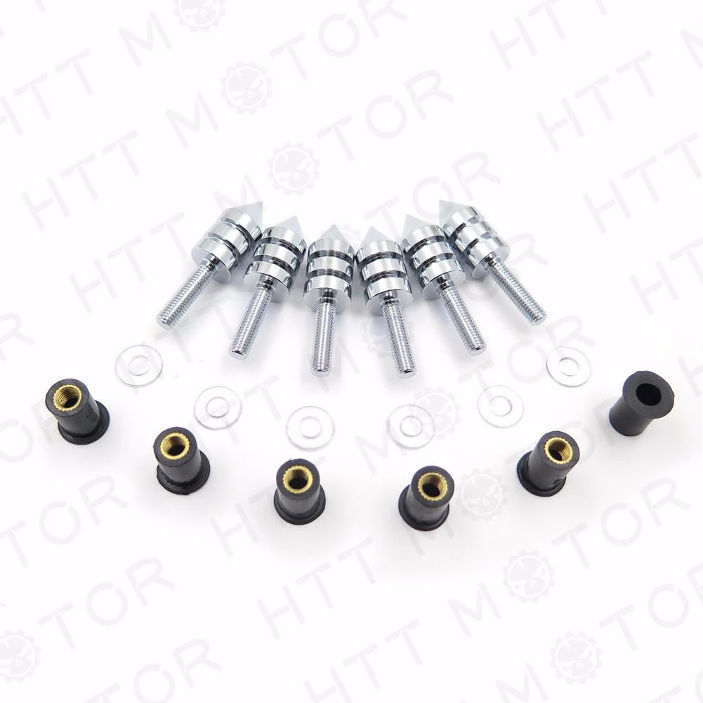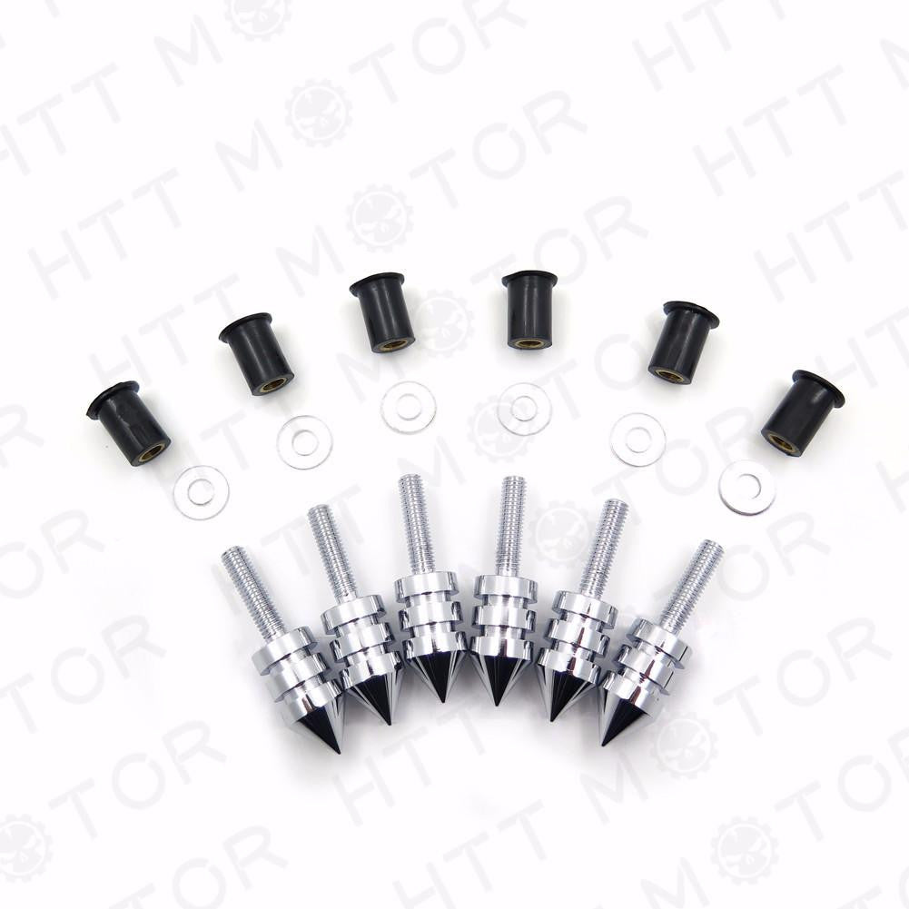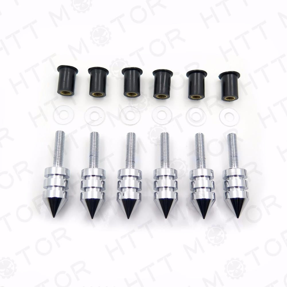 Chrome Spike Windscreen Bolts Screws Kit 6pcs Suzuki GSXR 1000 03 04