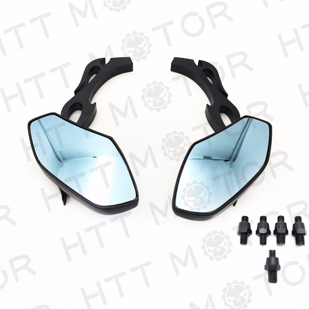 HTT- BLACK MOTORCYCLE REARVIEW MIRRORS FOR HONDA SUZUKI CHOPPER BOBBER CRUISER 8-10MM