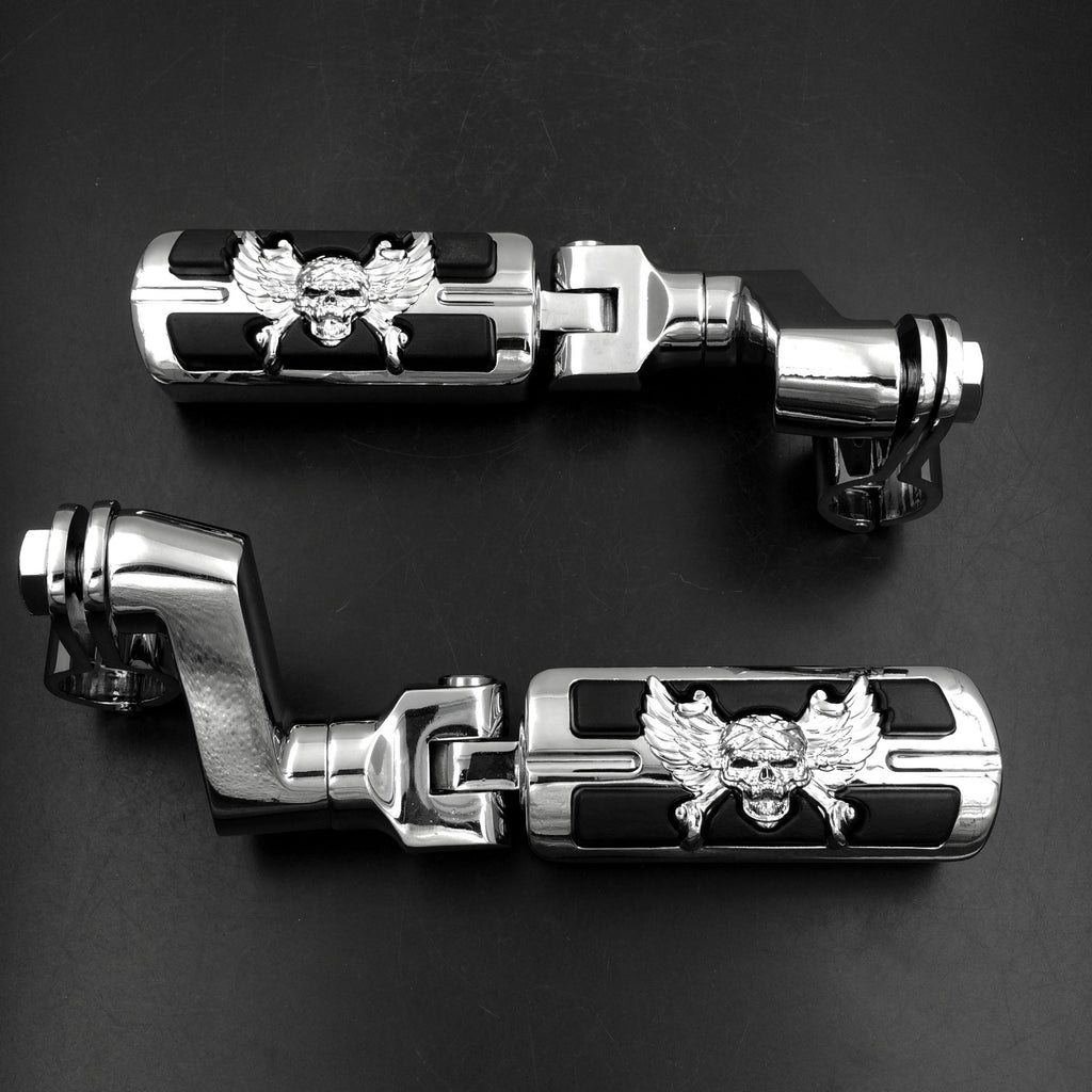 Wing Skull Zombie Shape Front Rider 1" Stiletto 4475 Foot Peg Clamps For Honda Shadow ACE Magna Valkyrie Chrome Body Black Rubber