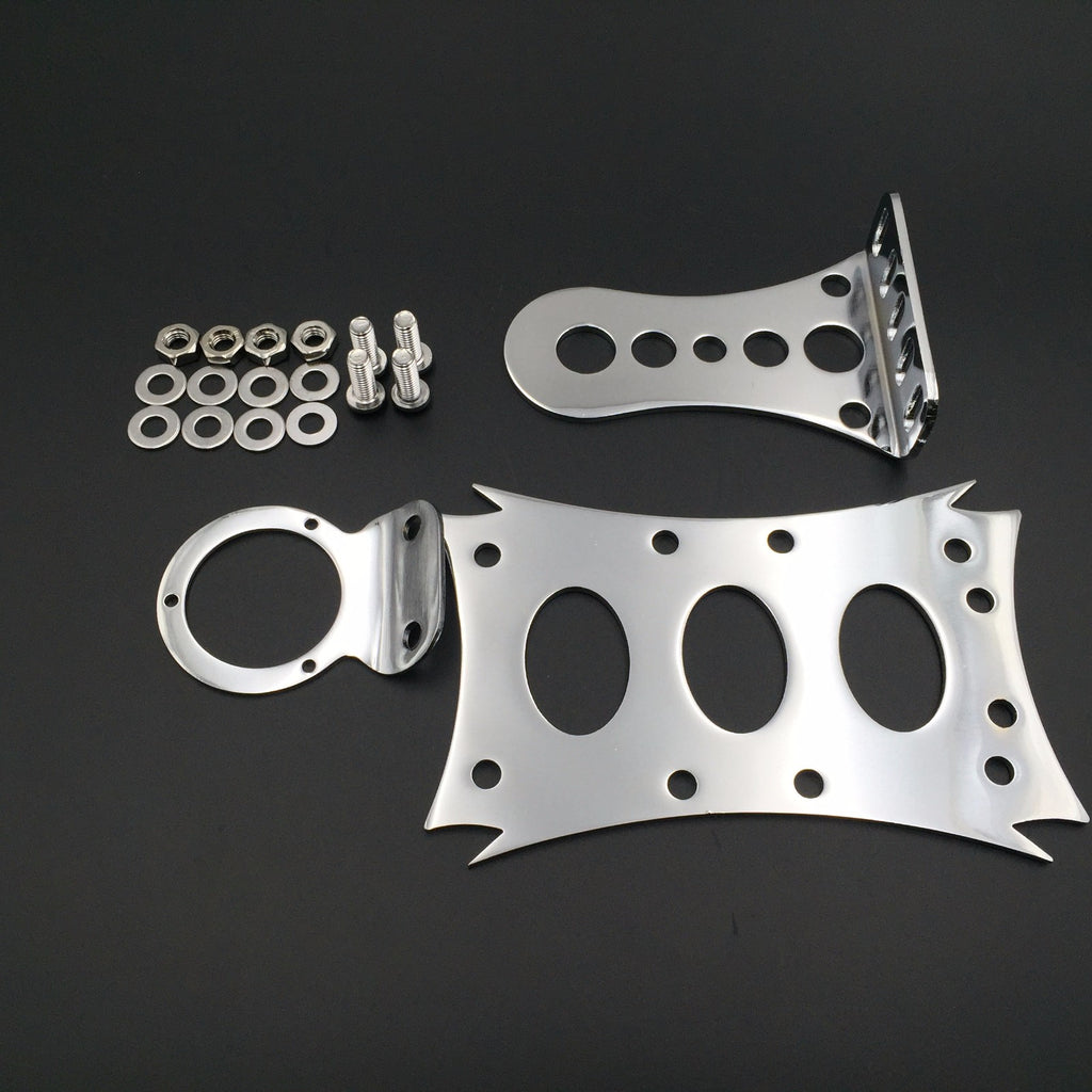 HTT Motorcycle Chromed Horizontal Vertical Zigzag Style Side Mount 7 3/10" x 4 4/5" License Plate Bracket For Harley Bobber Chopper Custom Suzuki Kawasaki Yamaha Honda